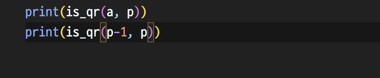 해당 함수를 작성하고 a, p를 넣으면 True가 나온다.