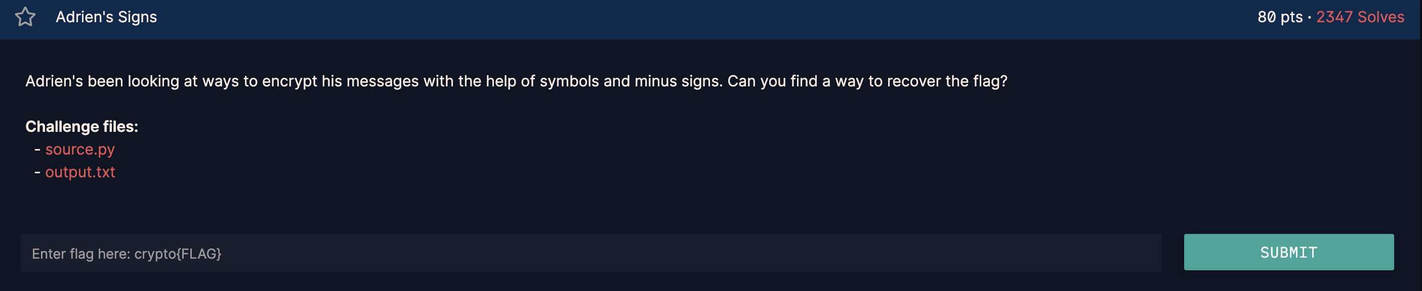 애드리언은 symbol(아마 르장드르 기호)와 마이너스 기호를 통해 메시지를 암호화 하는 방법을 찾고 있어요. flag를 복구할 방법을 알고 있나요?